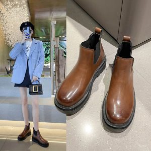 Chelsea Boots Women’s Ankle boots British style Girls Naked Boot Round Toe Winter Shoes Woman Flat Boot Black