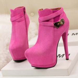 Top Suede metal square head rivet Trendy Ankle Boots Women Shoes Woman High Heels Shoes Female Fashion Booties Sizes 34-40
