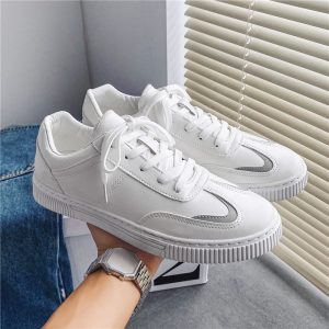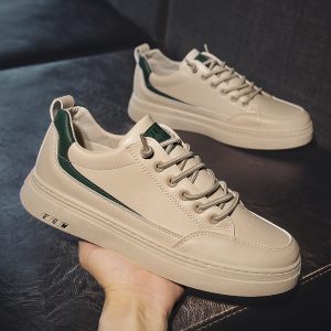 New Stylish Shoes White Leather Sneakers Men Vulcanize Shoes Students Sneakers Low Top Teenager Boy Waterproof Sneakers Man