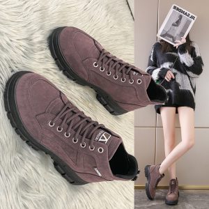 Women Spring Boots New Genuine Leather Suede Ladies Martin Boots British Style Retro Ankle Boots Women