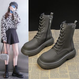 Ankle Boots for Women Autumn Motorcycle Boots Thick Heel PlatfoAnkle Shoes Woman Slip on Round Toe Fashion Boots