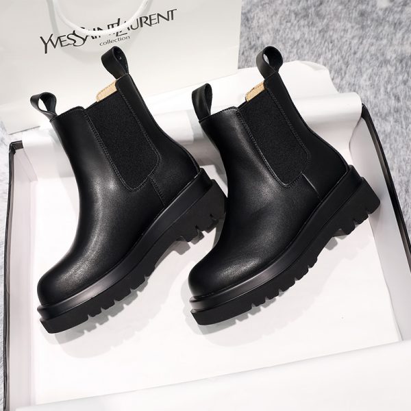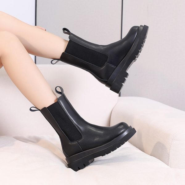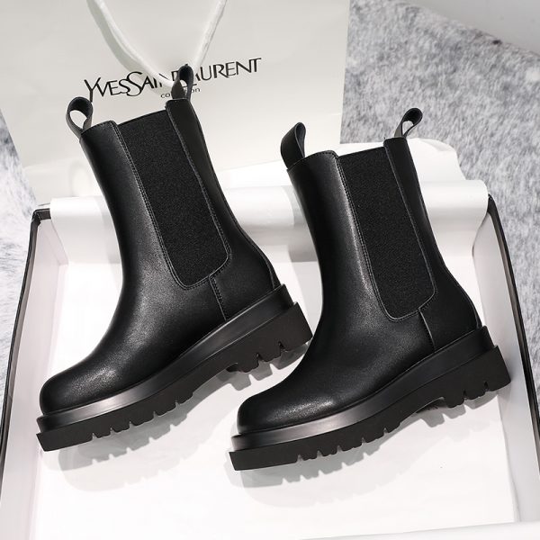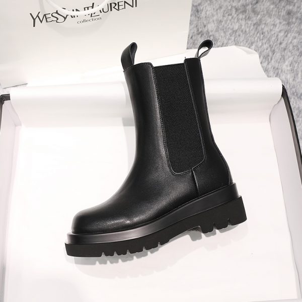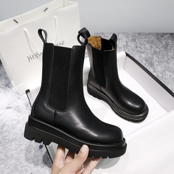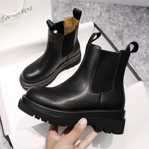 high quality New genuine leather boots women autumn winter ankle boots platform Chelsea boots slip on ladies botas black