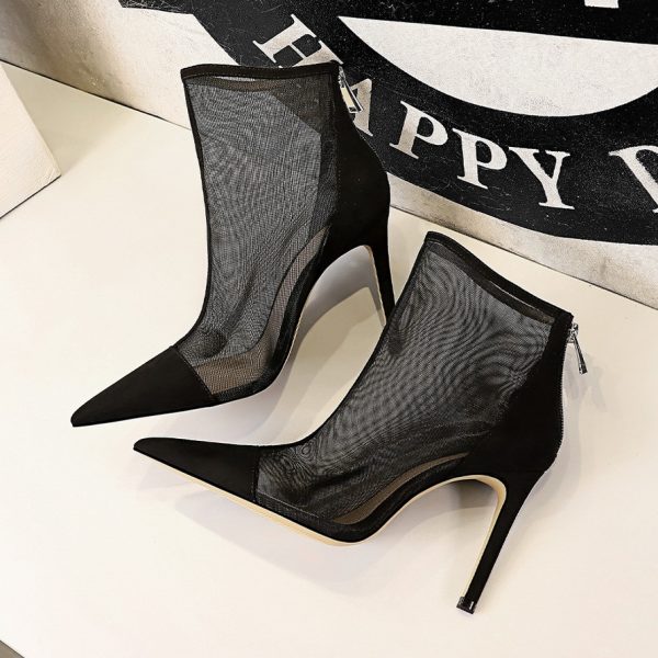 Spring Autumn New Sexy Mesh Ankle Boots Women Pointed Toe Stiletto Heels Fashion Zip Ladies Party Shoes Size 34-40