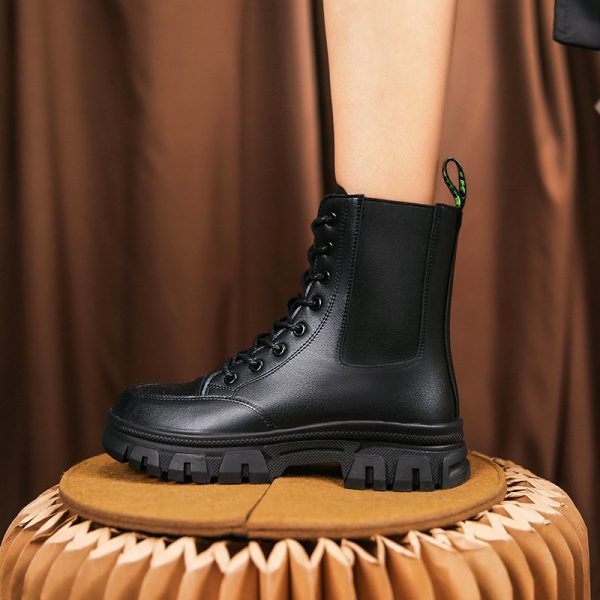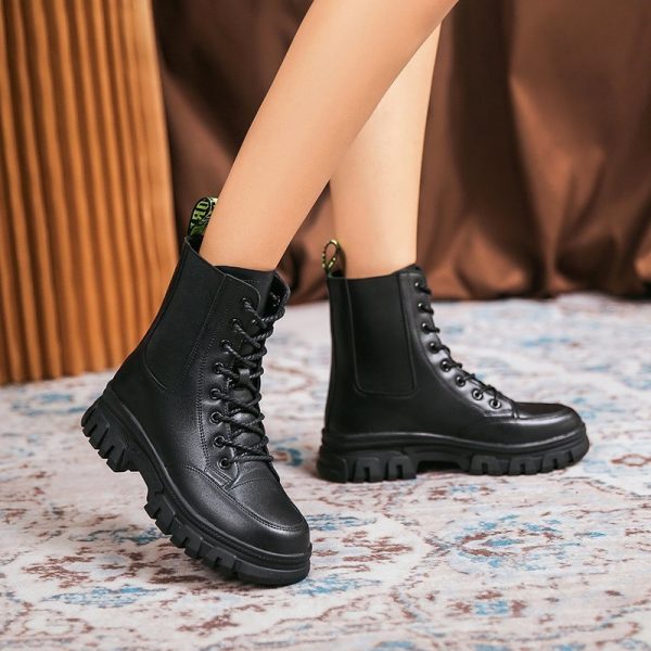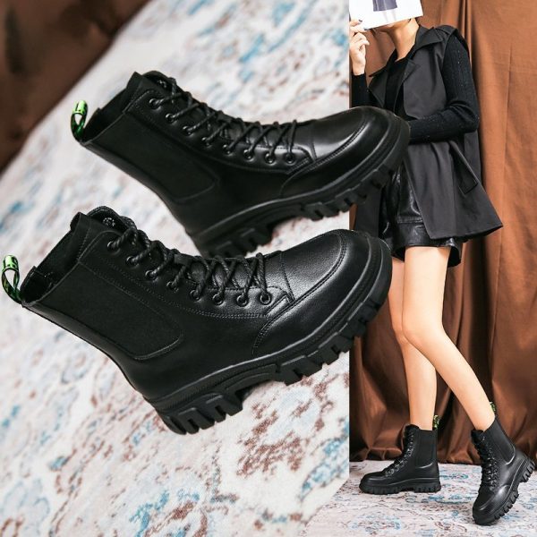 Women Autumn Winter Hot Boots Woman Lace Up Shoes Motorcycle Platform Boots Ladies Casual Leather Fashion Footwear New