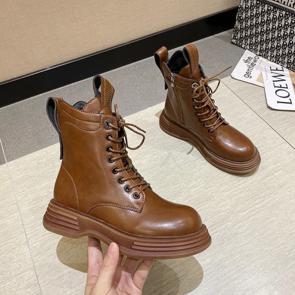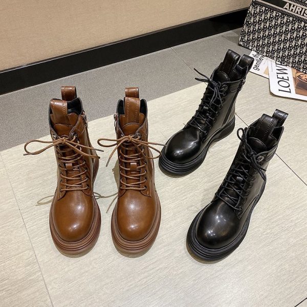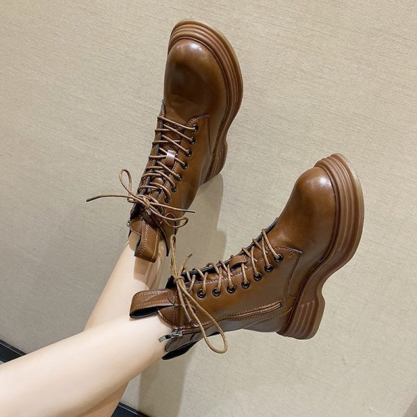 Top Quality Women Boots Genuine Leather Side Zipper Shoes Woman High Heels Fashion Winter Motorcycle Boots Shoes