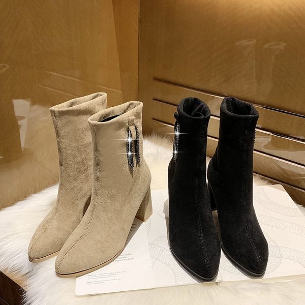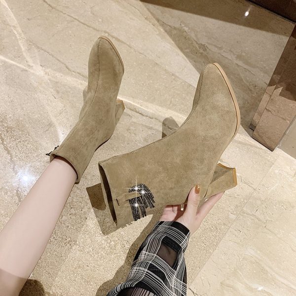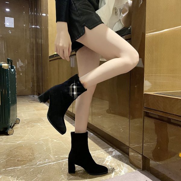 High Quality Women Suede Boot Fashion Leather High Heels Ladies Shoes Short Boots Woman Shoes Zapatos De Mujer black