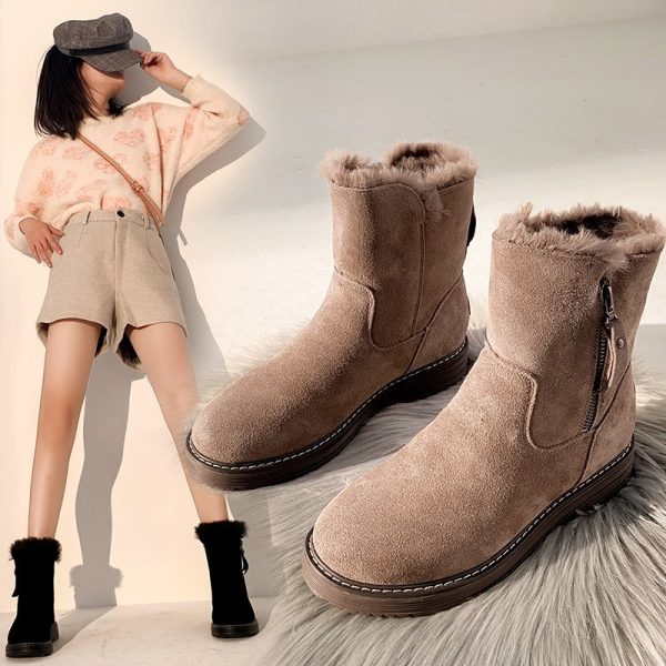 100% Genuine Leather Winter Shoes Women Snow Boots Warm Shoes Cold Winter Woman Boots Female Height Increasing 4.0cm A1668