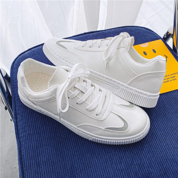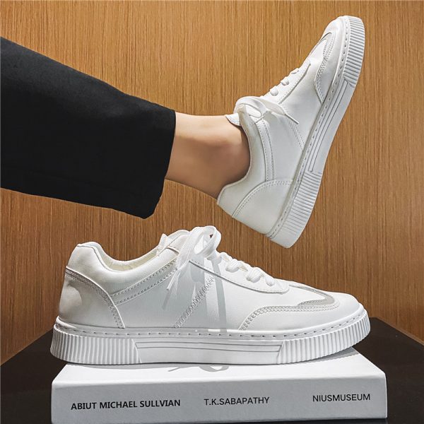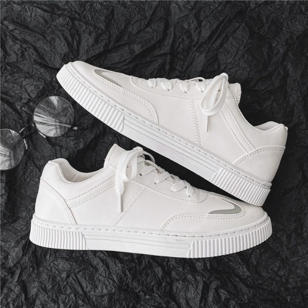 New Stylish Shoes White Leather Sneakers Men Vulcanize Shoes Students Sneakers Low Top Teenager Boy Waterproof Sneakers Man