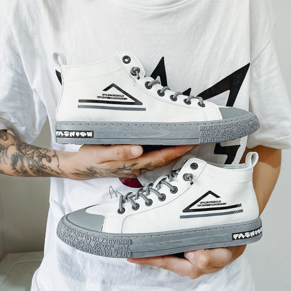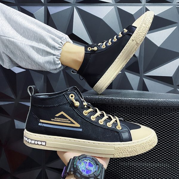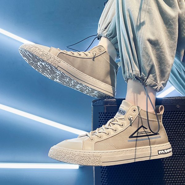 men’s canvas sneakers, flat shoes vulcanized casual high-top shoes, white, black and Khaki all-match student sneakers