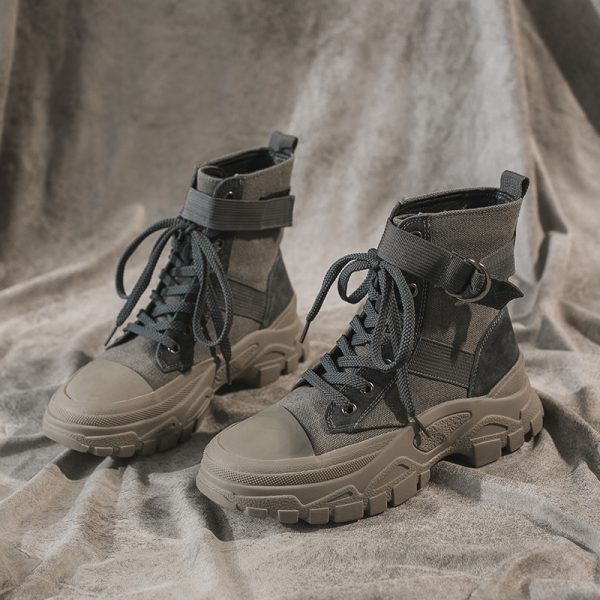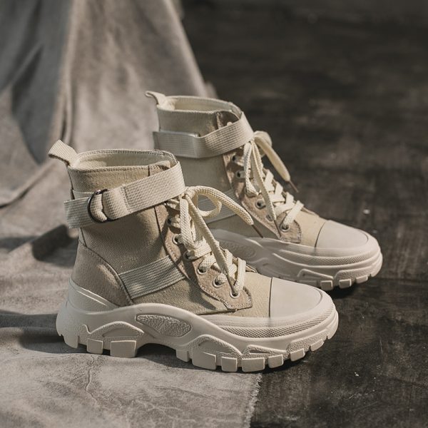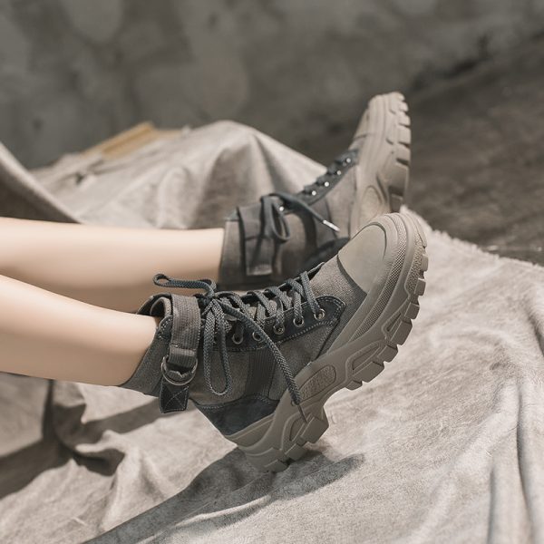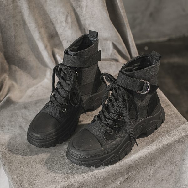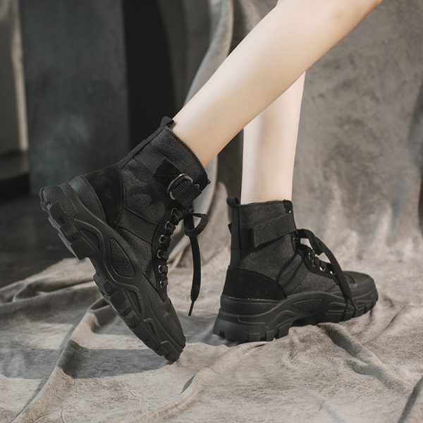 Winter Genuine canvas Ankle Boots For Women Thick Bottom Fashion Sneakers Short Boots Flat Platform Boot Shoes Ladies Boot